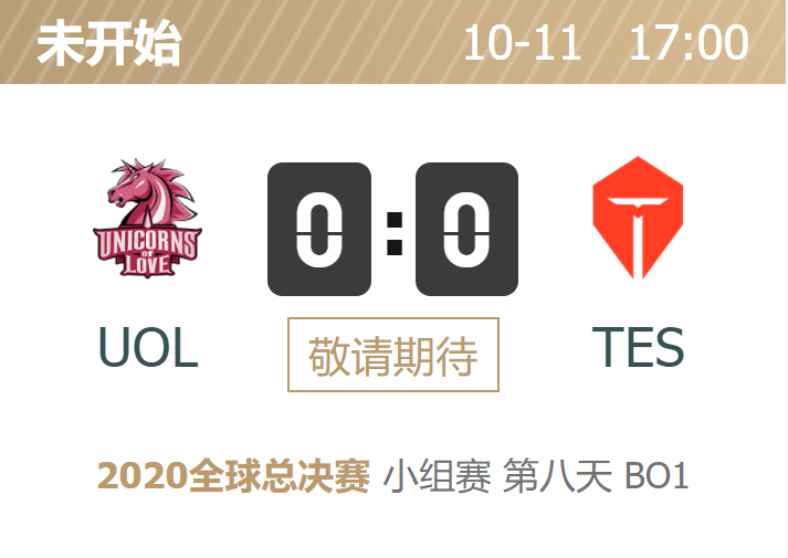 2020年英雄联盟全球总决赛联赛(10月11日17:00) TES VS UOL