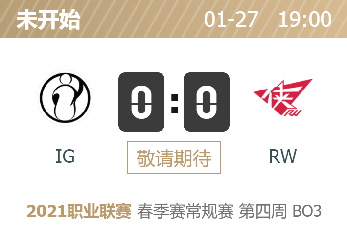 2021年LPL中国职业联赛(1月27日19:00) IG VS RW