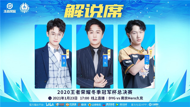 2020王者荣耀冬季冠军杯总决赛解说席:李九、瓶子、重庆QGhappy.Fly